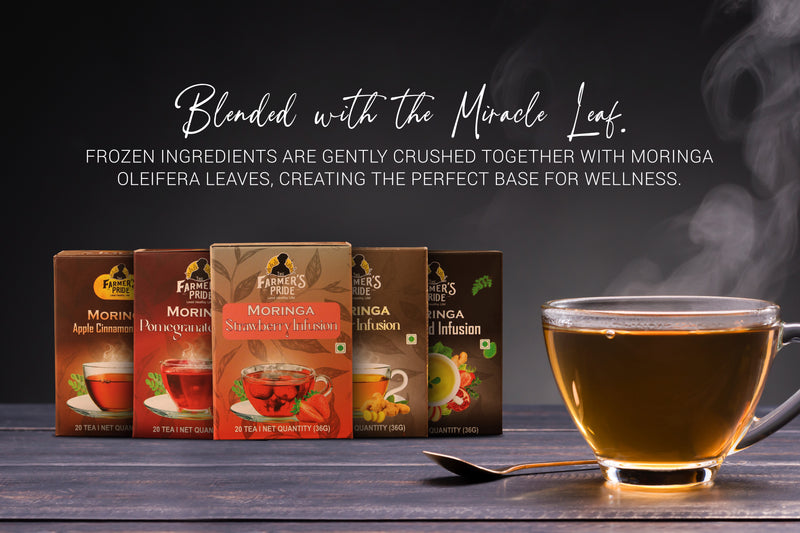 Gently blended with the nutrient-rich "miracle leaf," Moringa Oleifera, each cup—whether floral, fruity, or spicy—offers pure, refreshing vitality.